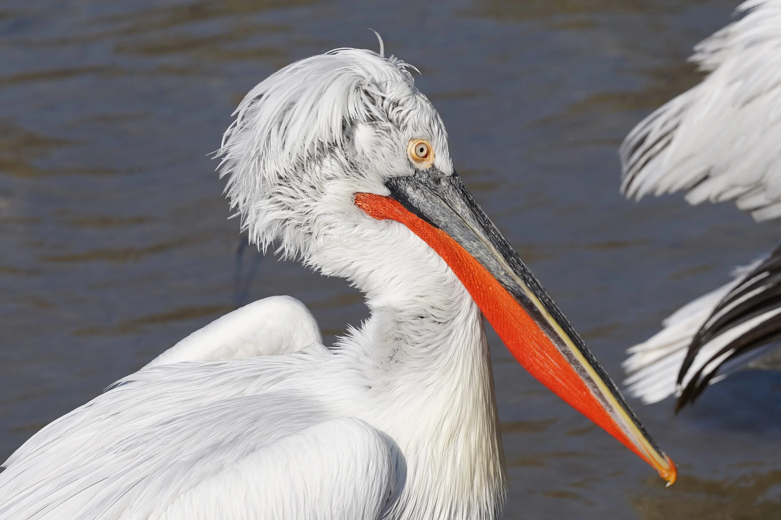 Fast ausschliesslich von Fisch ernährt sich der Krauskopfpelikan. Er benötigt etwa 1-3 kg Fisch pro Tag, welche er mit seinem Kehlsack wie mit einem Kescher im flachen Wasser nahe der Oberfläche erbeutet. Oft schliessen sich mehrere Vögel zusammen, bilden einen Halbkreis und treiben die Fische in seichtes Wasser. Er kommt in der Schweiz natürlicherweise nicht vor.