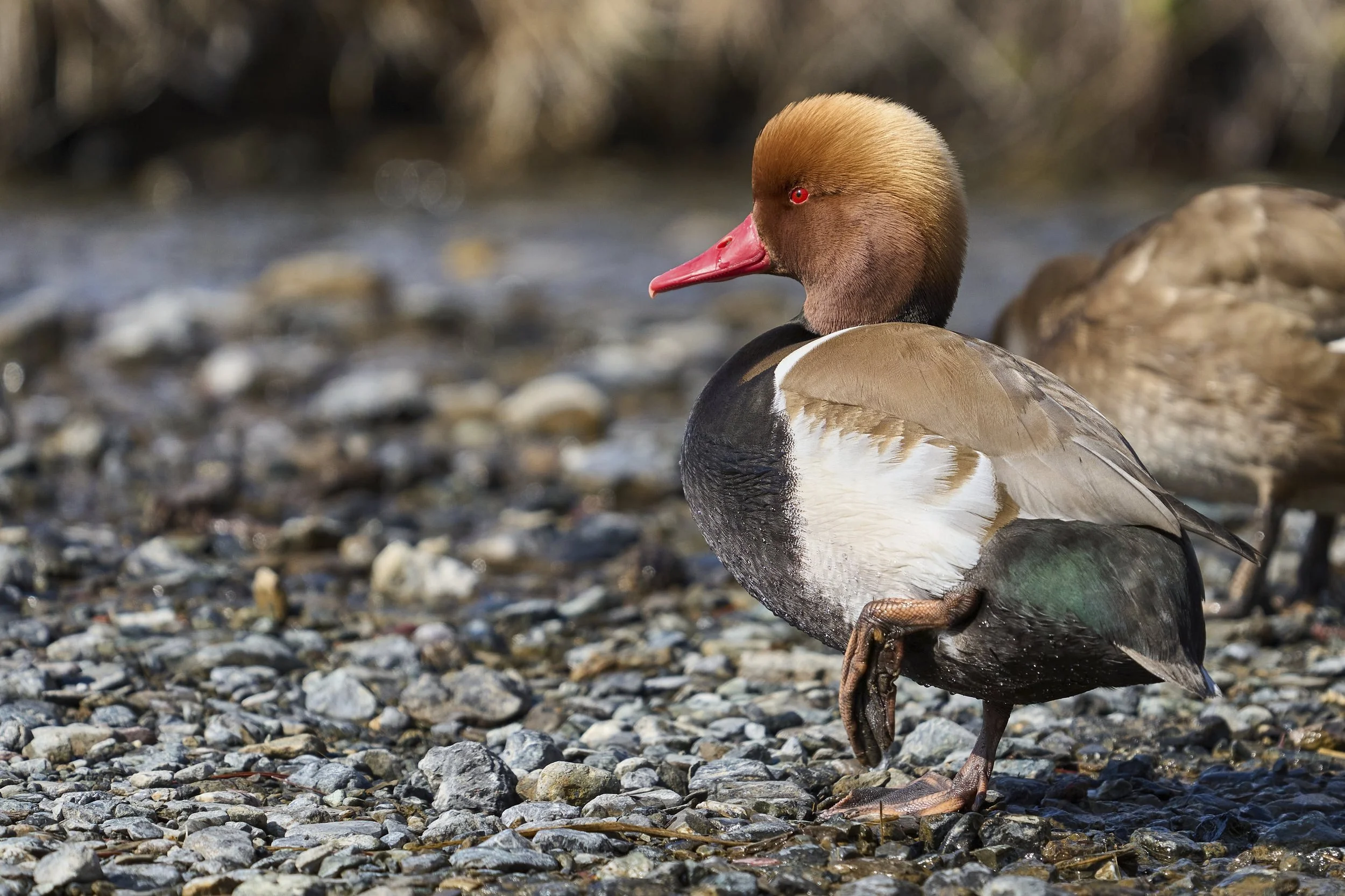 Interessanterweise befand es sich nicht in Gesellschaft des zweiten, sondern hatte offensichtlich eine Vorliebe für das einzelne Pfeifentenmännchen.