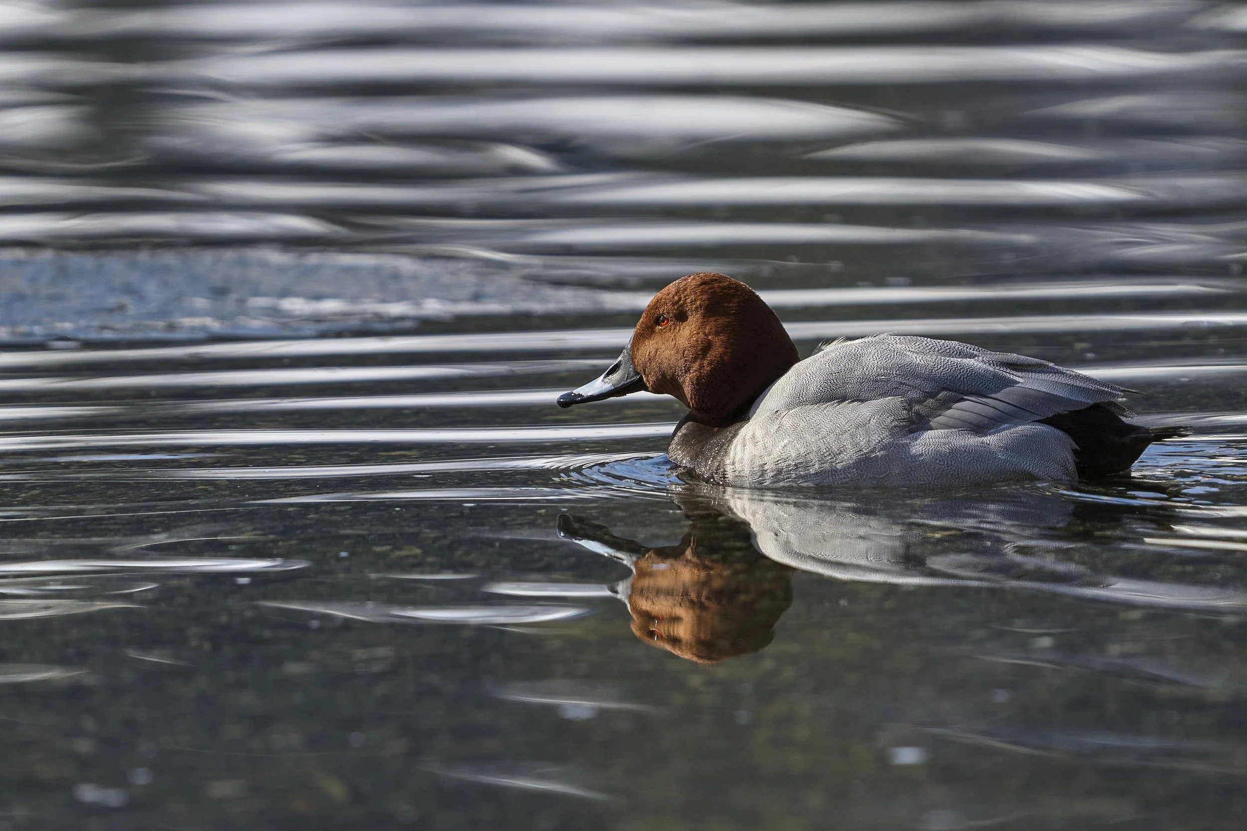 Dafür wurden wir völlig unerwartet mit Wasservögeln belohnt: Auf dem zugefrorenen See verblieben nur zwei kleine eisfreie Wasserflächen, verursacht durch die Strömung von Bächlein. Auf diesen, direkt am viel begangenen Fussweg, überwintern gleich fünf verschiedene Entenarten, zudem ein Zwergtaucher und zwei Blässhühner. Wie die Eichhörnchen im Wald haben sich auch die Vögel an Passanten gewöhnt und betrachten diese eher als mögliche Futterquelle denn als Gefahr. Sogar freilaufenden Hunden gegenüber zeigten sie sich zwar vorsichtig, flogen aber nie auf.